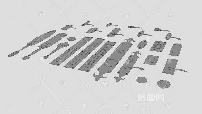 门硬件组合SU模型下载_sketchup草图大师SKP模型