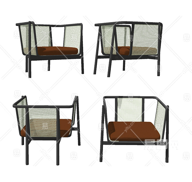 现代藤编休闲椅,椅子su草图模型下载