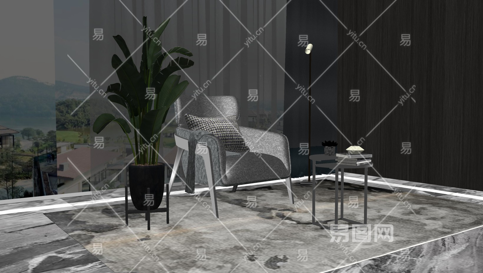 单人休闲椅子,沙发,茶几边几su草图模型下载