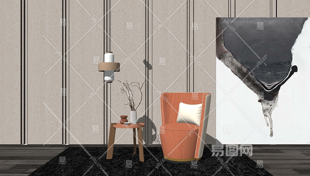 单人休闲沙发椅子,边几su草图模型下载