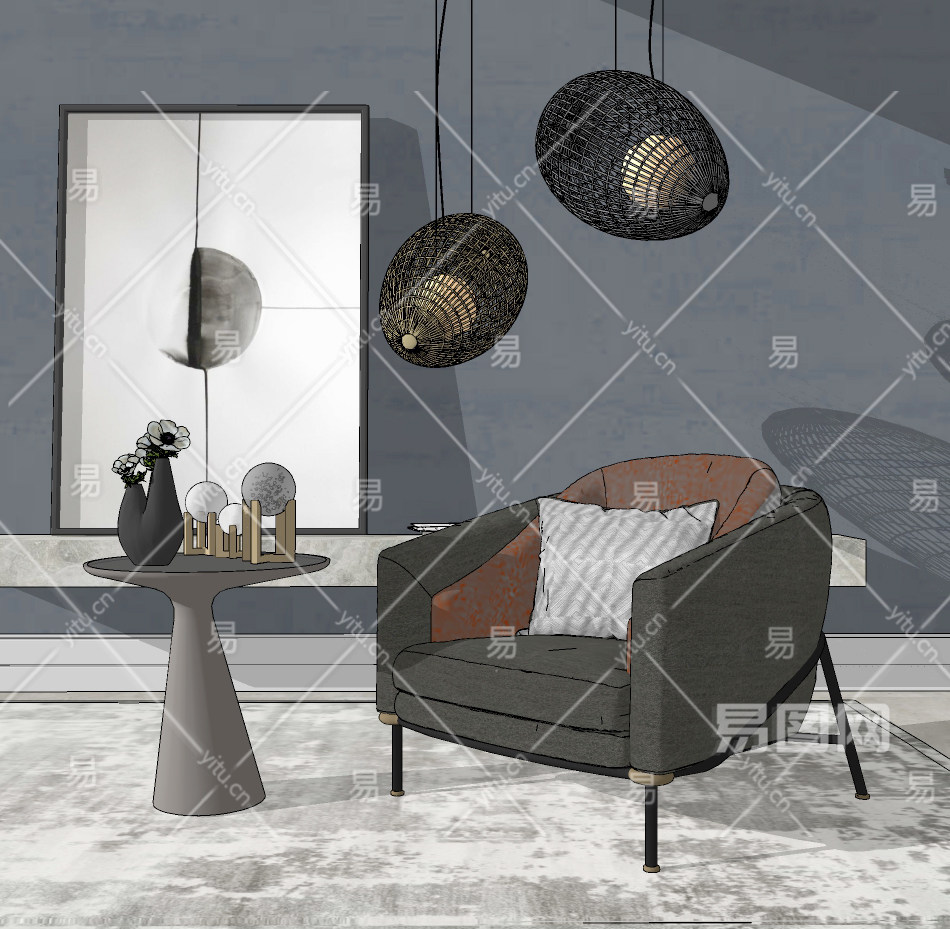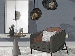 现代单椅休闲椅藤编,编织吊灯su草图模型下载