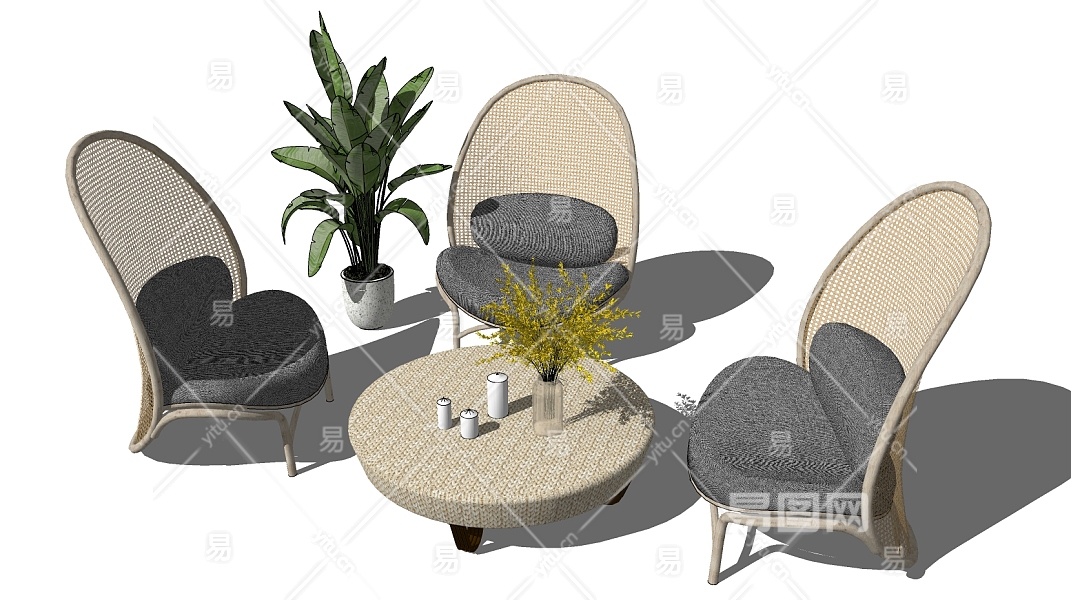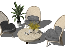 55新中式藤编,编织自然风休闲椅 su草图模型下载