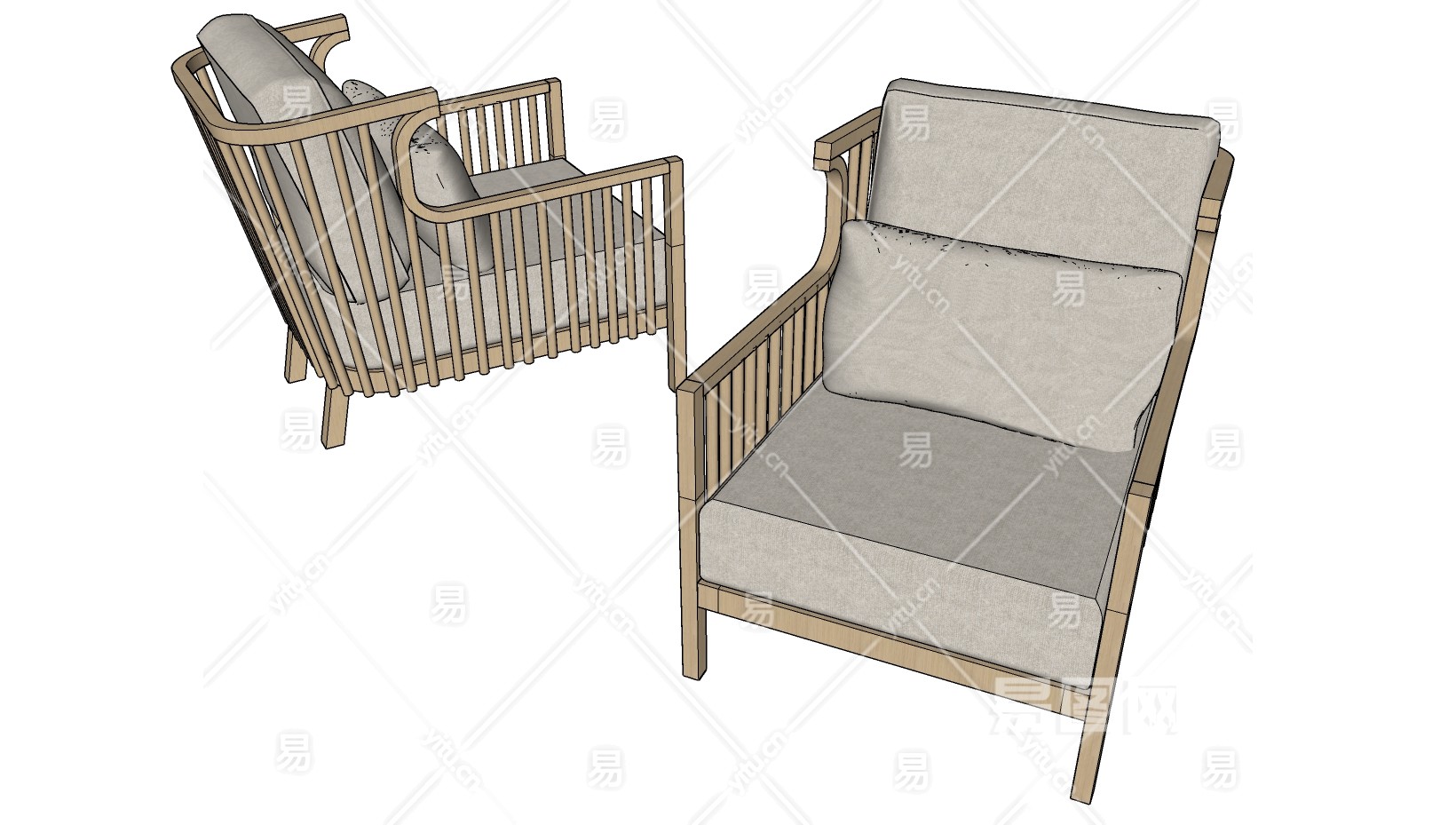 新中式木制单人休闲椅子沙发su草图模型下载