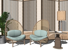 54新中式现代风格自然风藤编编织休闲椅 su草图模型下载