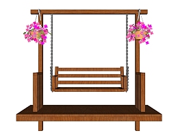 中式实木秋千吊椅sketchup模型,吊椅草图大师模型下载