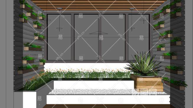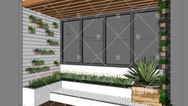 现代阳台绿植花园SU模型下载_sketchup草图大师SKP模型
