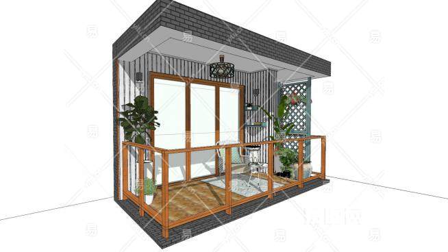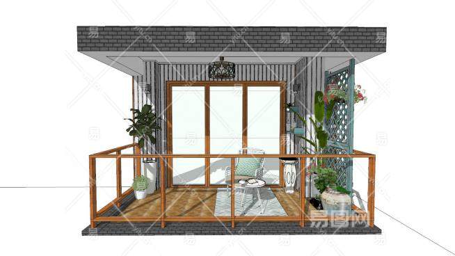 现代装饰阳台SU模型下载_sketchup草图大师SKP模型