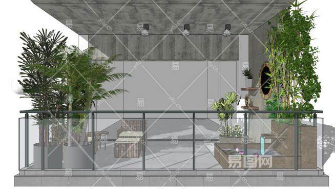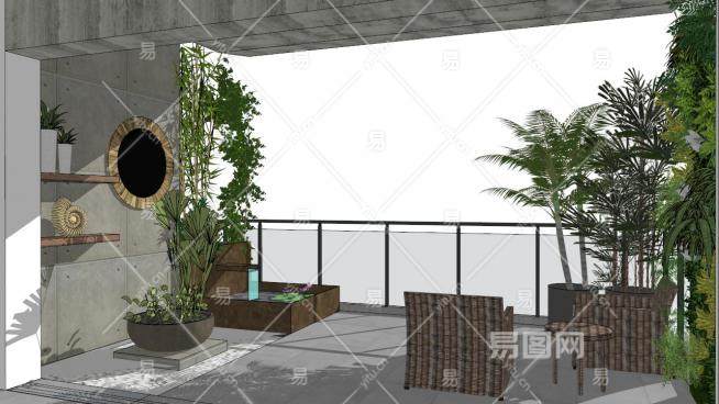 这是露台景观设计su模型,阳台也叫露台,晒台,指供室外活动的屋面或底层面伸出室外的有维护无上盖的台面。露台景观设计su模型下载_sketchup图大师SKP模型