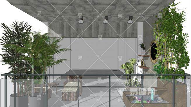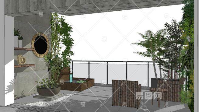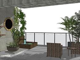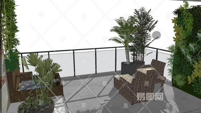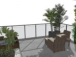 这是阳台su模型,阳台也叫露台,晒台,指供室外活动的屋面或底层面伸出室外的有维护无上盖的台面。阳台su模型下载_sketchup图大师SKP模型
