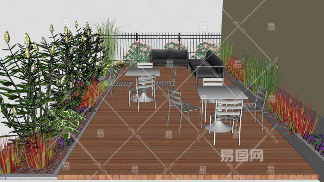 户外大阳台屋顶花园SU模型下载_sketchup草图大师SKP模型