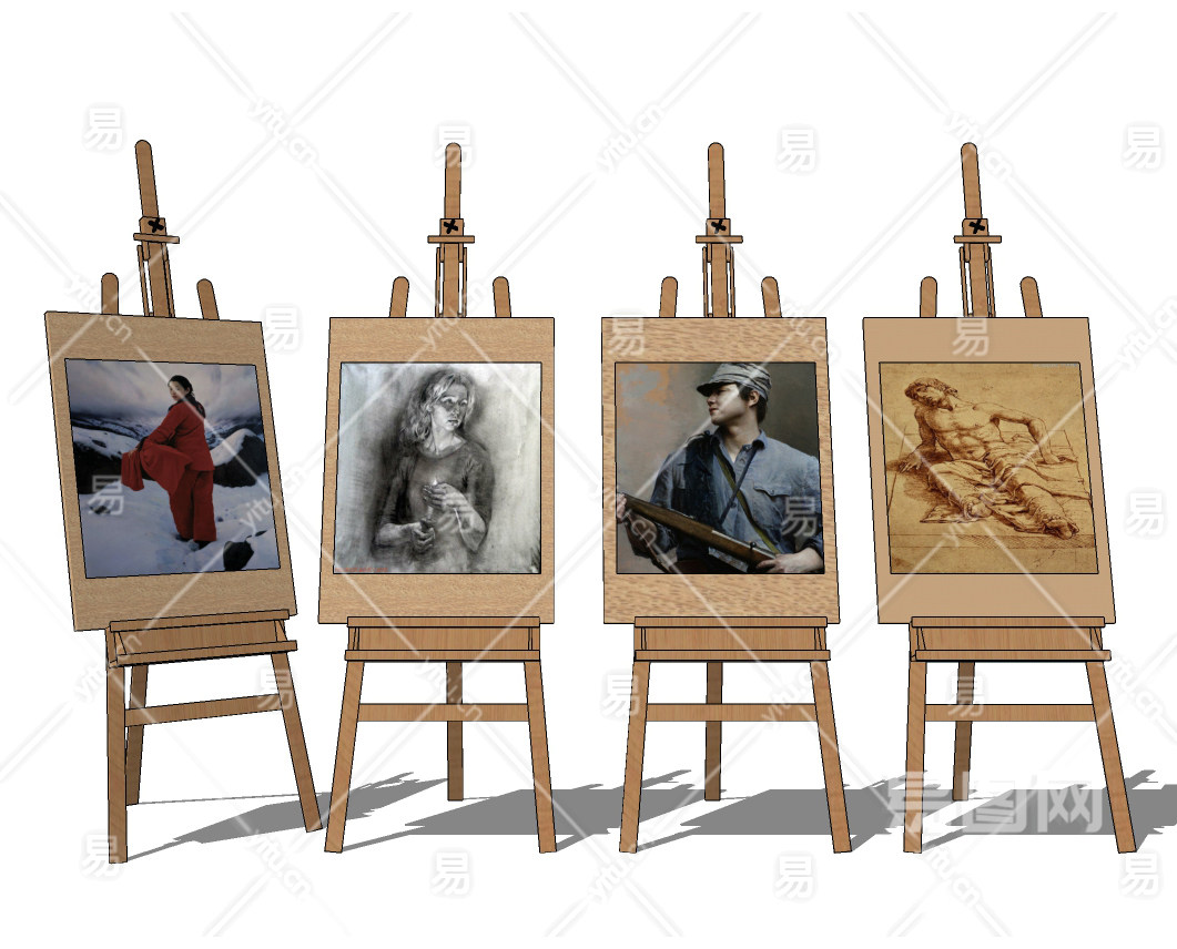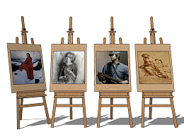 现代调节式画架,画板su草图模型下载