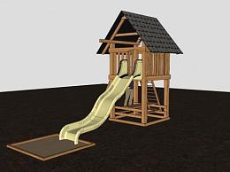 木制滑梯儿童游乐设施和沙堆SU模型下载_sketchup草图大师SKP模型