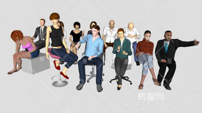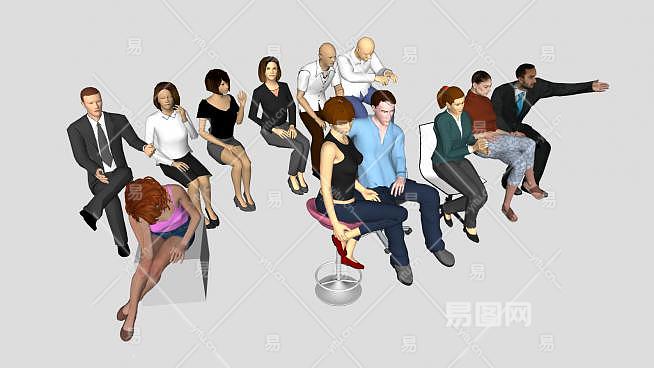 这是现代坐姿组合SU模型,他们有正襟危坐,有的坐姿优雅,还有的坐相不雅,二郎腿翘翘。现代坐姿组合SU模型下载_sketchup图大师SKP模型