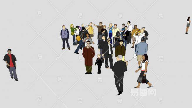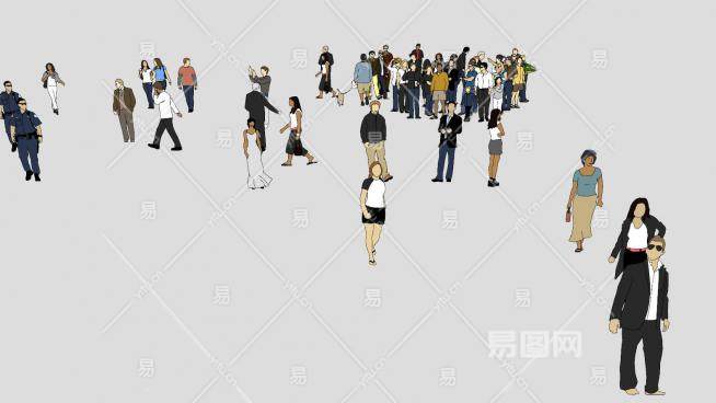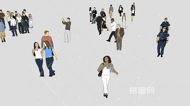 2D行走站立的人物SU模型下载_sketchup草图大师SKP模型