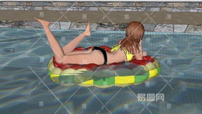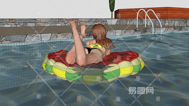 这是西瓜充气上的女孩SU模型,女孩在泳池里玩得很开心,灵感来自k-pop少女时代女子组合的派对音乐。西瓜充气上的女孩SU模型下载_sketchup图大师SKP模型