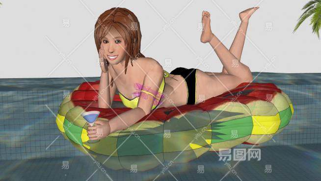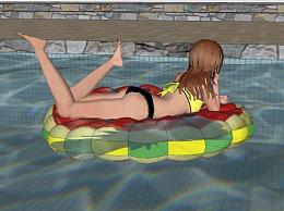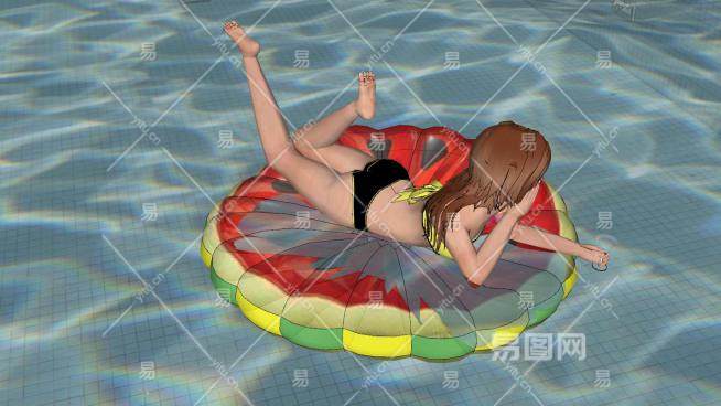 西瓜充气船上的女孩SU模型下载_sketchup草图大师SKP模型