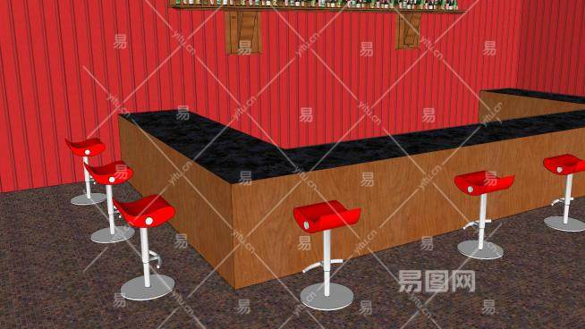 这是现代实木酒吧装修SU模型,不是很好。快速酒吧的场景。现代实木酒吧装修SU模型下载_sketchup图大师SKP模型