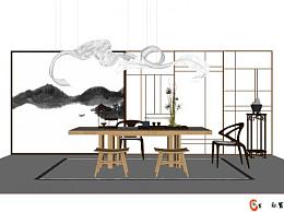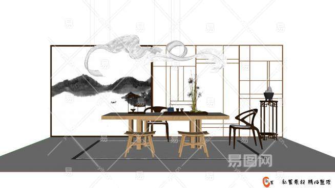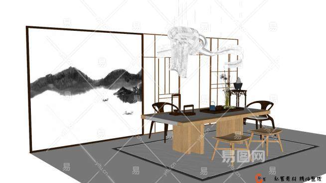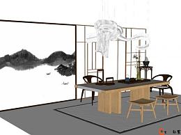 新中式风格茶室SU模型下载_sketchup草图大师SKP模型