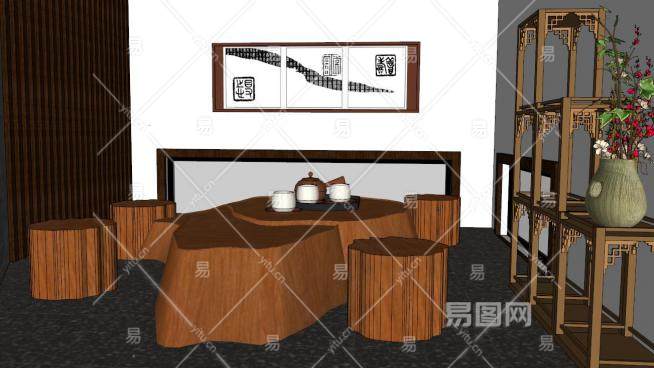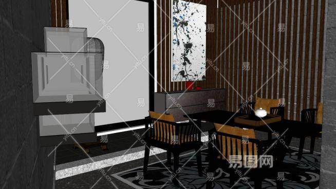 一层茶室su模型下载_sketchup草图大师SKP模型