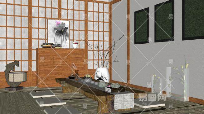 日式茶室茶席SU模型下载_sketchup草图大师SKP模型