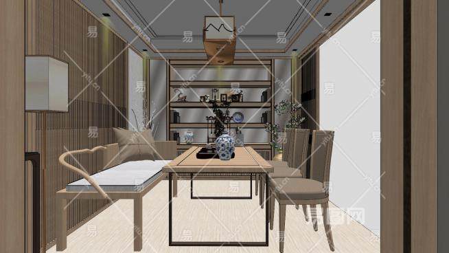 现代简约茶室室内SU模型下载_sketchup草图大师SKP模型