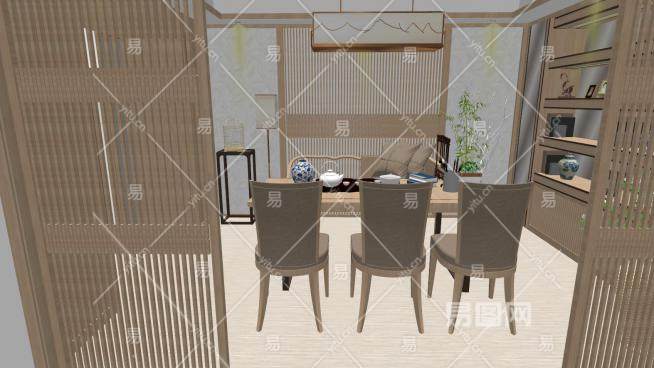 这是现代简约茶室室内SU模型,举办茶会的房间称茶室,也称本席、茶席或者只称席。茶室内设壁龛、炉。炉的位置决定室内席子的铺放方式。始于我国唐朝,大唐盛世,四方来朝,威仪天下。现代简约茶室室内SU模型下载_sketchup图大师SKP模型