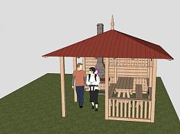 现代简易烧烤木屋SU模型下载_sketchup草图大师SKP模型