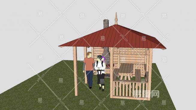 这是现代简易烧烤木屋SU模型,简易房3x3m,带烧烤。现代简易烧烤木屋SU模型下载_sketchup图大师SKP模型