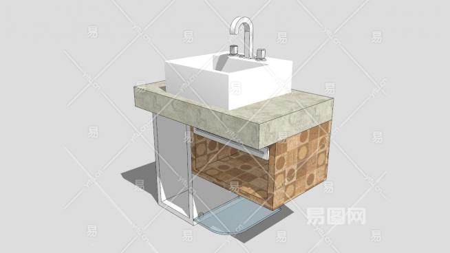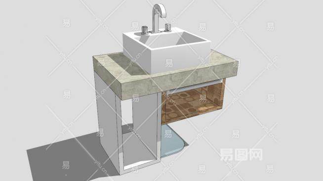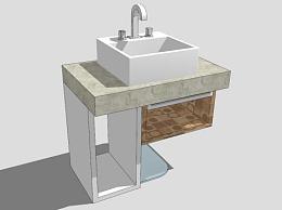 现代简洁浴室柜洗脸台SU模型下载_sketchup草图大师SKP模型
