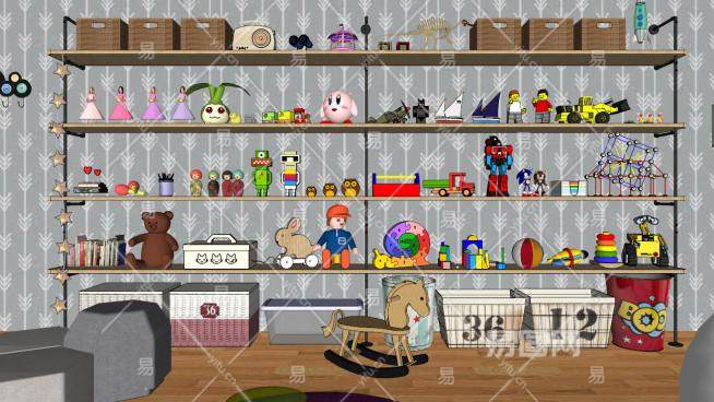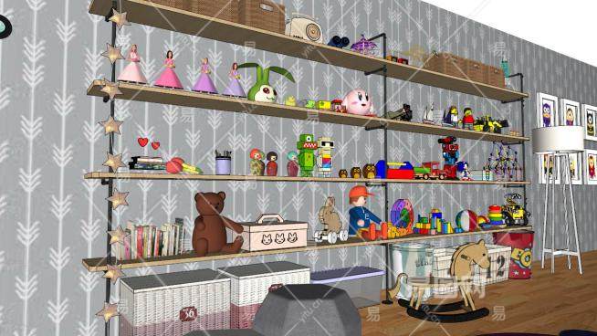 这是儿童货架su模型,儿童玩具摆件,挂画,十分适用于儿童房,幼儿园设计玩具多样可爱,制作精致儿童货架su模型下载_sketchup图大师SKP模型