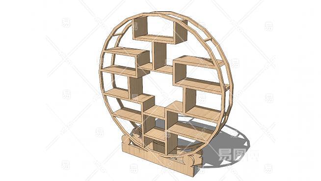 中式圆弧博古架su模型下载_sketchup草图大师SKP模型