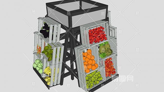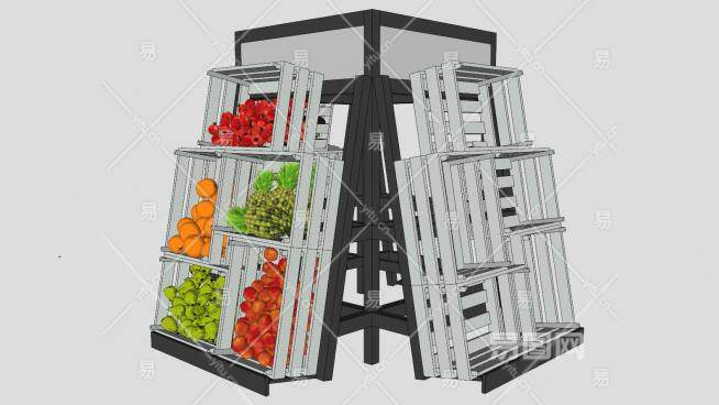 这是精品果架蔬菜架SU模型,展架作为一种营销手段,是随着终端POP广告发展而来的。它具有绿色环保、方便运输、组装迅速等优点,摆放在销售场所中,能起到展示商品、传达信息、促进销售的作用。精品果架蔬菜架SU模型下载_sketchup图大师SKP模型