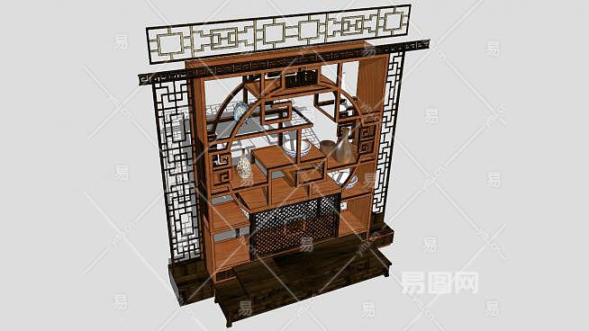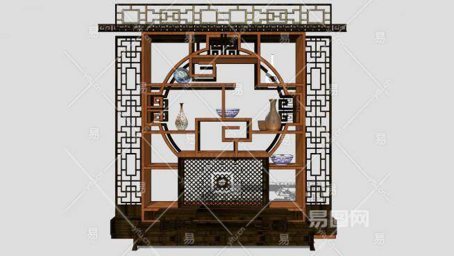 中式博古架多宝格SU模型下载_sketchup草图大师SKP模型