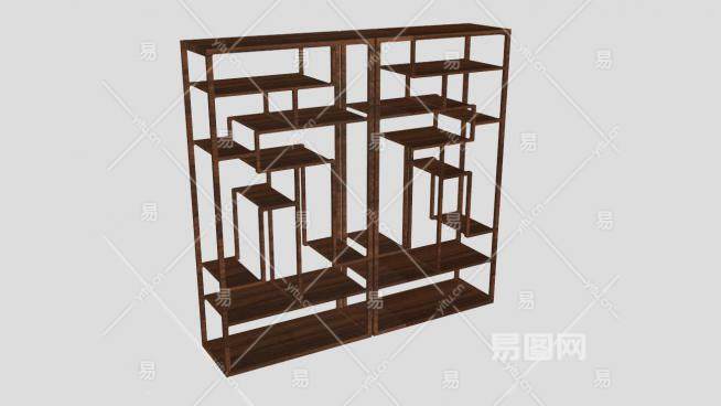 空的博古架多宝格SU模型下载_sketchup草图大师SKP模型