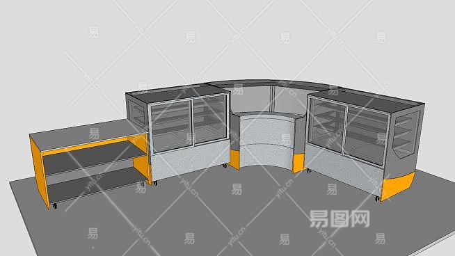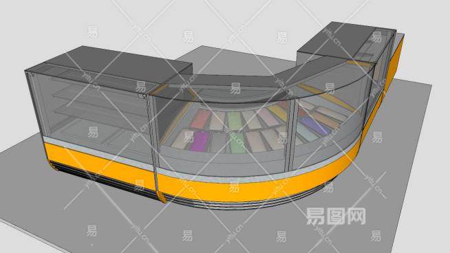 这是重晶玻璃展柜SU模型,展示冰淇淋,糕点,糖果和现金表。重晶玻璃展柜SU模型下载_sketchup图大师SKP模型
