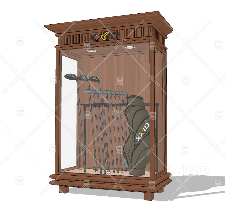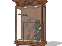 美式高尔夫球袋,球棍,展示柜su草图模型下载