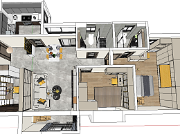 • 现代小户型室内透视草图大师模型 SKETCHUP SKP模型