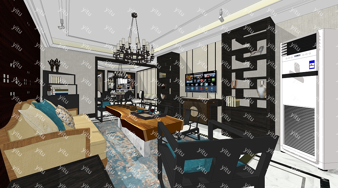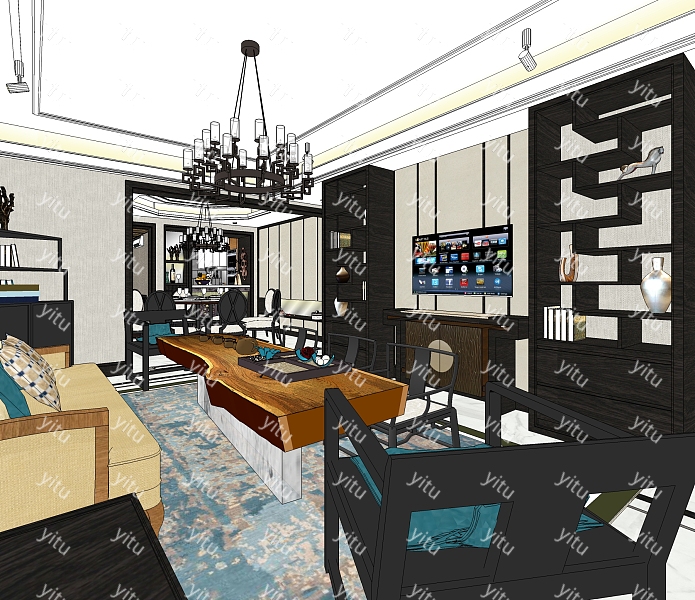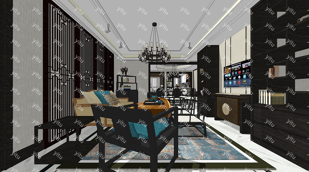 当前的位置:首页 > sketchup > sketchup模型 > 家装 > 整体方案 > 新中式套房设计草图大师模型,家装SU模型下载