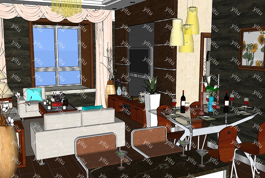 欧式风格 家装设计草图大师模型,家装sketchup模型下载