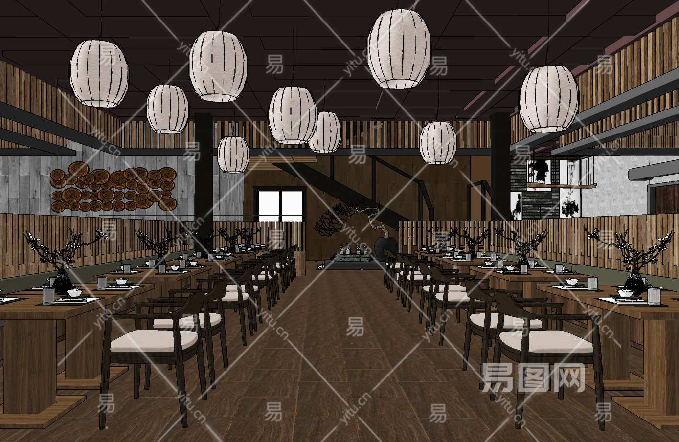 新中式中餐厅su草图模型下载
