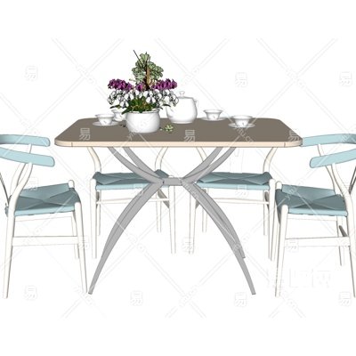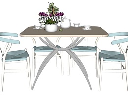 北欧实木餐桌椅su模型