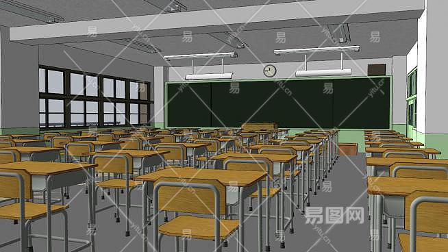 这是大教室桌椅su模型,教室是教师向学生传授课业的场所。它是一间由前面是讲台、后面是座位的大房间构成。靠讲台的墙上有黑板或白板,是教师讲课、布置作业方。后面是学生的座位。在中国,中小学的课桌布置一般有四组,每组有八至九桌,每桌坐两个学生。大教室桌椅su模型下载_sketchup图大师SKP模型