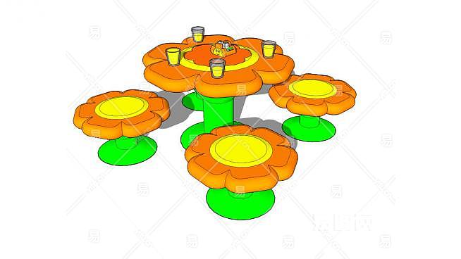 向日葵儿童桌椅子SU模型下载_sketchup草图大师SKP模型