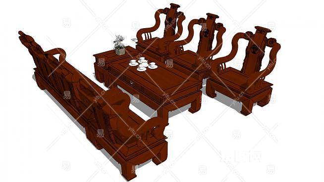 这是红木家具su模型,指按照传统工艺、款式以明、清经典硬木家具为主,功能以陈设、收藏为主、制作精湛的深色名贵硬木家具。泛指硬木高仿家具、红木古典家具、古典工艺家具等。红木家具su模型下载_sketchup图大师SKP模型