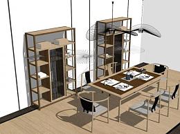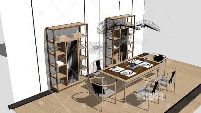 这是新中式木质桌椅组合SU模型,整体大气简约,但中式元素渗透到很多细节之处,整体屏风空间的营造,传达一种低调奢华,中式美学的古道崇简之风。新中式木质桌椅组合SU模型下载_sketchup图大师SKP模型