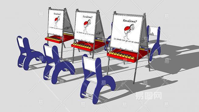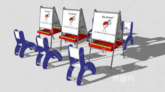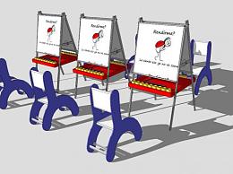 儿童画画桌椅组合SU模型下载_sketchup草图大师SKP模型