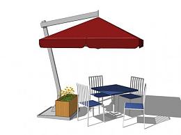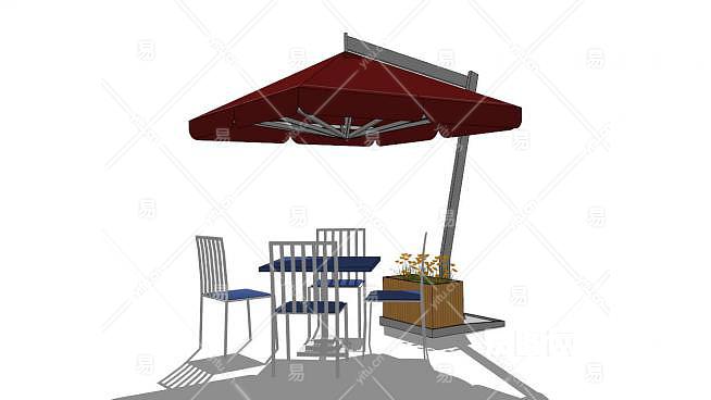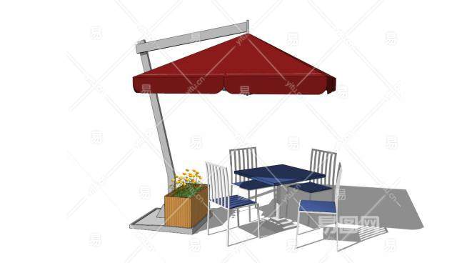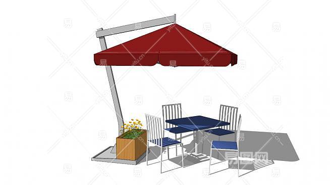 遮阳伞室外蓝色桌椅组合SU模型下载_sketchup草图大师SKP模型