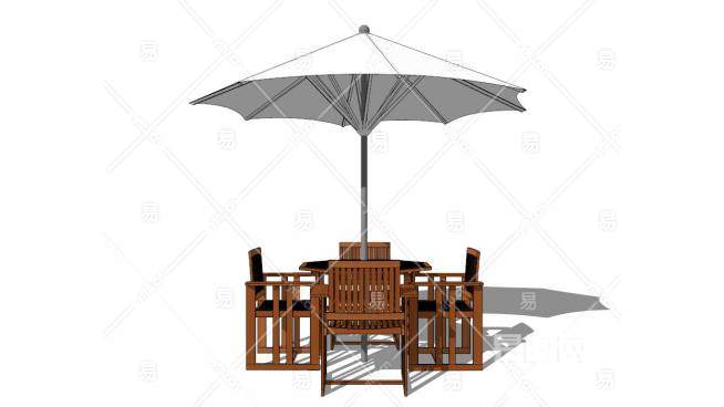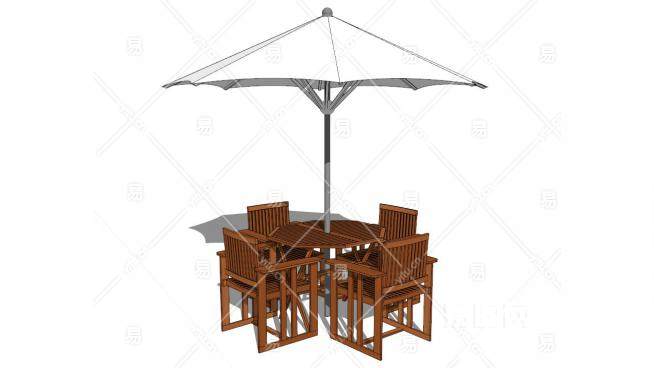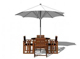 遮阳伞木质室外桌椅SU模型下载_sketchup草图大师SKP模型
