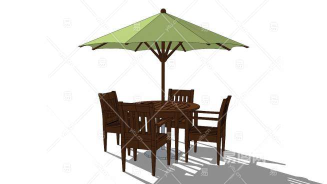 遮阳伞户外木质座椅SU模型下载_sketchup草图大师SKP模型