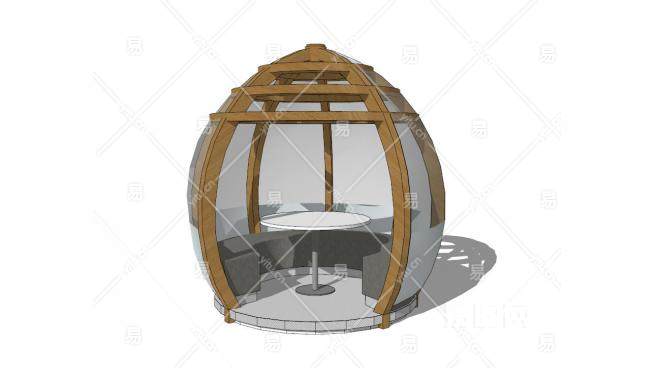 球形室外桌椅组合SU模型下载_sketchup草图大师SKP模型